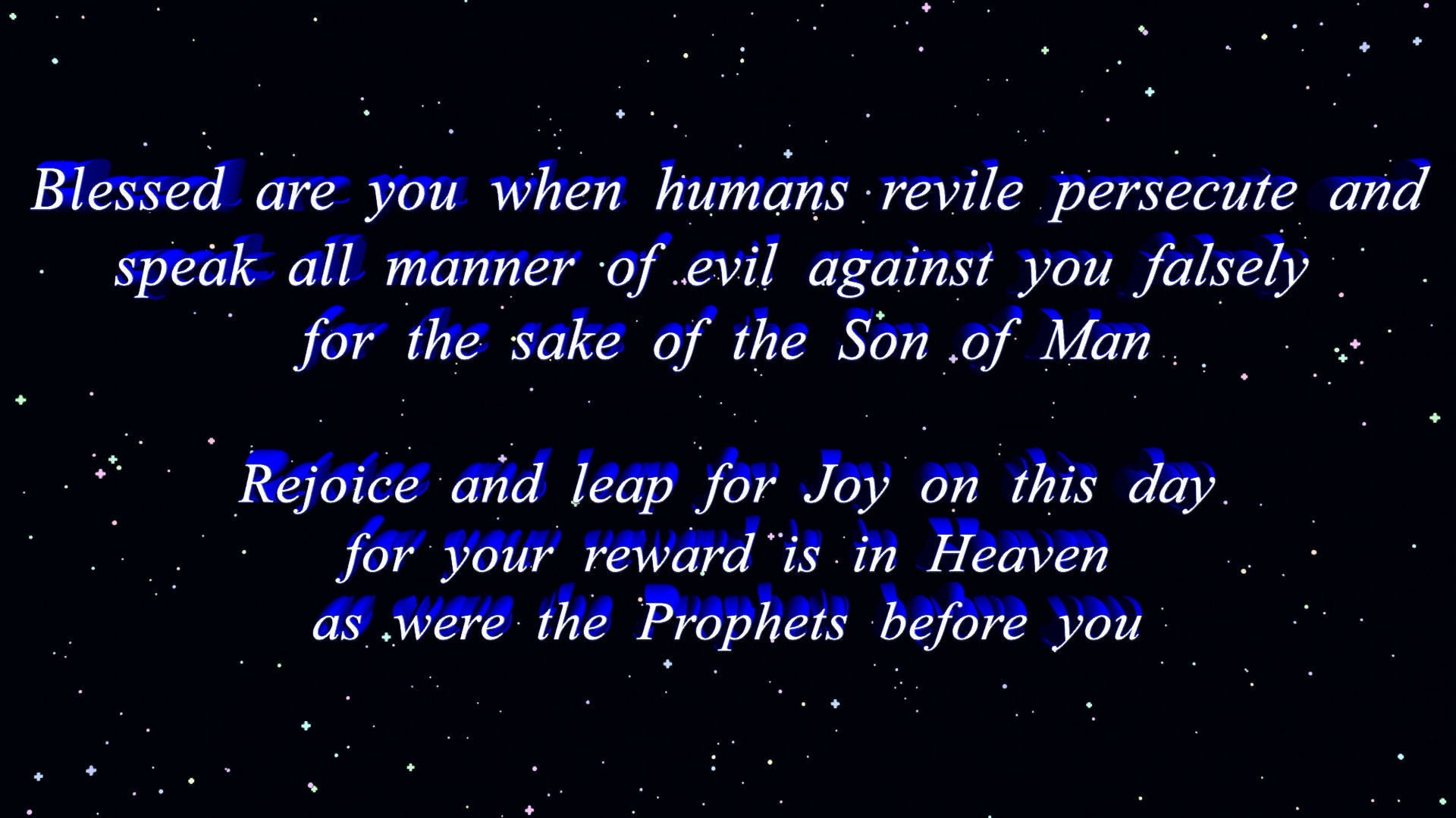 Blessed are the Peacemakers for they shall be called Children of God. Blessed are you who are persecuted for Truths sake for there is the Kingdom of God. Blessed are you when humans revile persecute and speak all manner of evil against you falsely for the sake of the Son of Man.